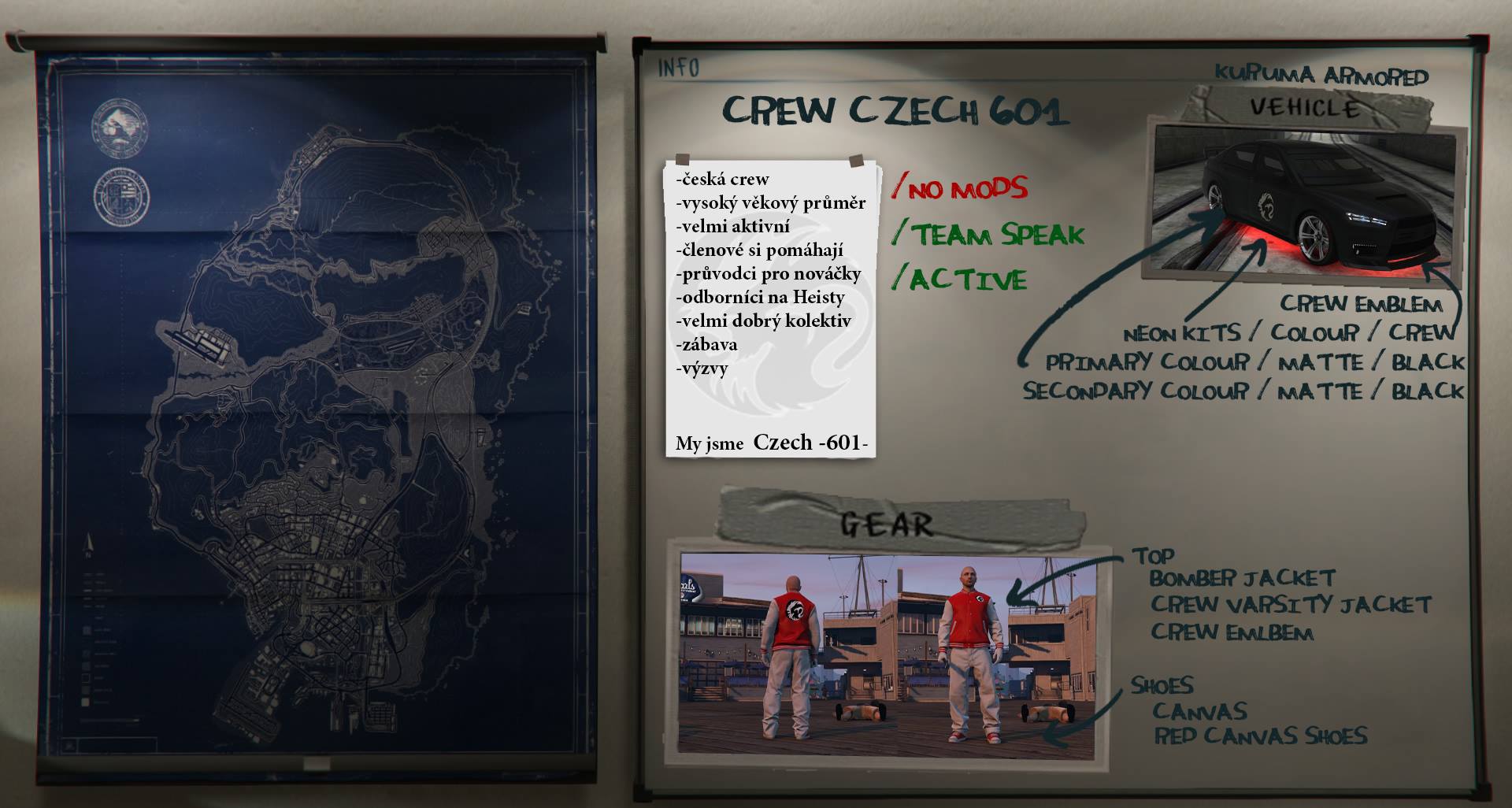 Pokud se k nám chceš přidat, stačí nám napsat a my s tebou probereme detaily. Kontaktuj nás buď přes kontaktní formulář nebo přes Rockstar Games Social Club – Crew Czech -601-.